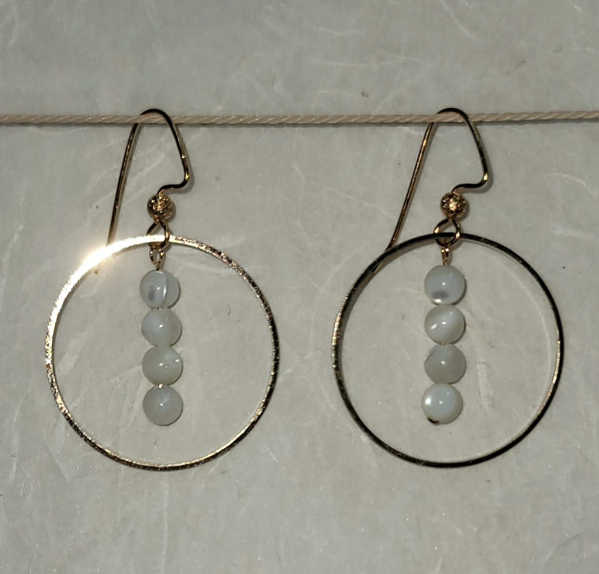 Add timeless elegance to your jewelry collection with these 2-inch brass earrings, featuring gold-plated over brass posts and a luminous mother-of-pearl bead centerpiece. The soft, iridescent glow of the pearl contrasts beautifully with the warm tones of brass, creating a refined and versatile accessory.